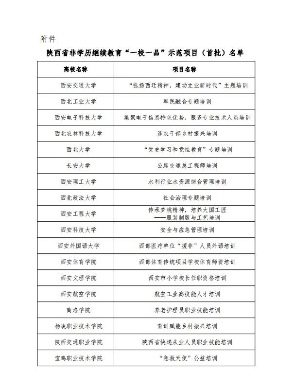 2022年陕西省高等继续教育学会组织开展非学历继续教育“一校一品”项目评选活动,全省共有25家高校的41个项目参评。经陕西省非学历继续教育“一校一品”项目专家组评审,近日确定西安交通大学等高校的18个项目入选陕西省非学历继续教育“一校一品”首批示范项目,beat365申报的“航空工业高技能人才培训”项目成功入选。