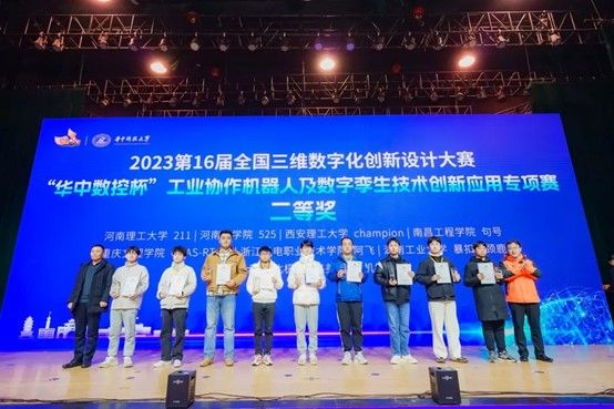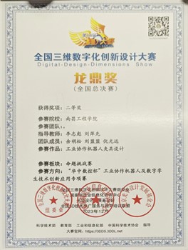 近日,第16届全国三维数字化创新设计大赛在湖北省武汉市华中科技大学成功举办。由白菜官网999策略白菜手机论坛教师李志彪、刘萍先指导,2021级机器人工程专业余胡松、刘盟盟、2023级工业工程专业倪光远组成的代表队首次参加“华中数控杯”工业协作机器人及数字孪生技术创新应用专项赛,并荣获全国总决赛二等奖。