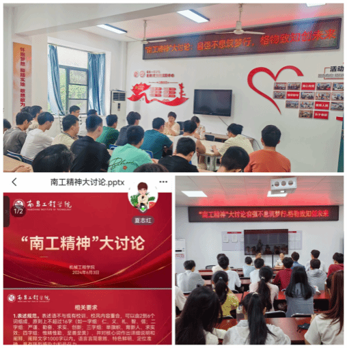 为深入挖掘和传承“南工精神”,近日,999策略白菜手机论坛通过“三会一课”、教职工政治理论学习、主题党日、主题团日、主题班会等多种形式,在教职工、学生党员、团员及校友中广泛开展“南工精神”大讨论。