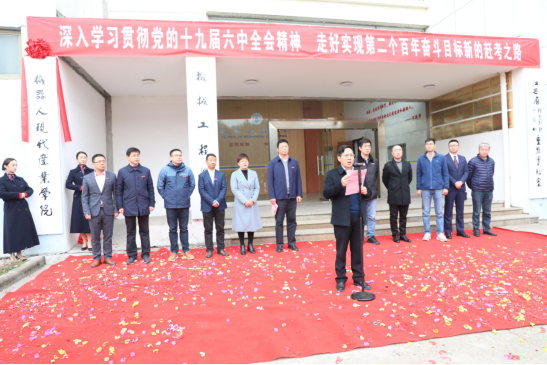 12月23日上午,白菜官网机器人现代产业学院揭牌仪式在机械电气楼举行,校长汪胜前,副校长陆伟锋、李培生出席仪式。