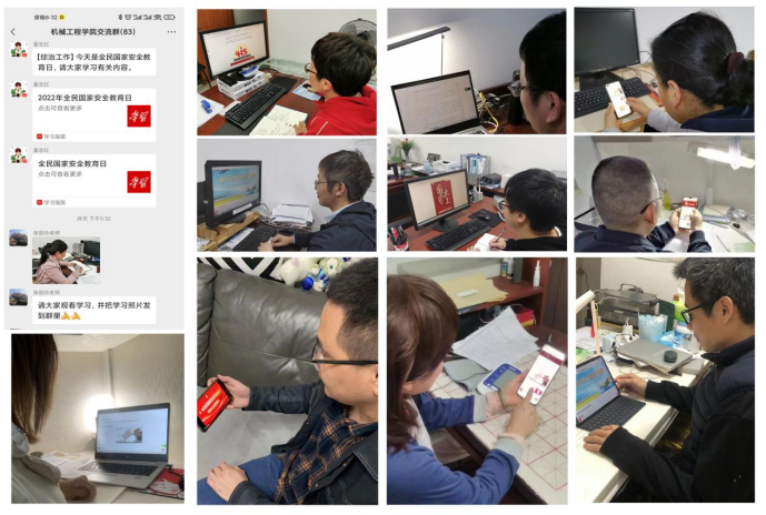 学院党委负责人带领全院教职工在学习强国APP上学习2022年全民国家安全教育日有关专题内容。全院教职工积极参与“百万网民学法律”之《科学技术进步法》和《江西省医疗保障基金行政处罚裁量权实施细则(试行)》专场知识竞赛活动。学工片组织召开了班主任、学生骨干国家安全教育线上专题会议,各班级组织学生线上观看了2022年国家安全教育公开课。