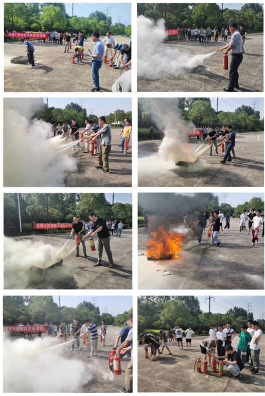 学院综治联络员组织师生们进行了消防安全理论知识学习,保卫处消防科科长熊献铜现场介绍了各种消防安全器材使用规范及操作程序。演练过程中,师生们体验灭火感受,学会了正确的灭火器操作方法。