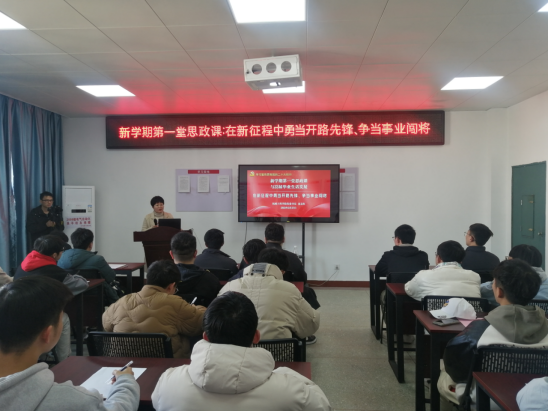 思政课以“在新征程中勇当开路先锋、争当事业闯将”为主题,围绕“习近平总书记对大学生有什么样的殷切期望”、“如何认识新时代是广大青年成就梦想的时代”和“如何为实现中华民族伟大复兴接续奋斗”三个部分展开,结合当前社会热点问题、最新事件和最新话题与毕业生展开交流,让毕业生感悟到党中央对青年寄予的厚望和自身的责任。同学们纷纷表示,要扎根行业、苦练本领、坚定不移听党话、跟党走,立鸿鹄志、做奋斗者,为实现中华民族伟大复兴的中国梦不懈奋斗。