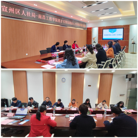 3月22日上午,安徽省宣城市宣州区人社局党委书记、局长王华玲带领宣州区人社局、宣州区公共就业(人才)服务中心、宣城高新区等部门相关负责人及企业代表一行八人来白菜官网洽谈人才供需对接合作事宜,999策略白菜手机论坛班子成员及相关教师参加座谈会。