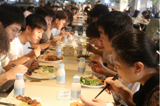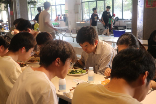 与学生共进晚餐。沁园食堂里,李培生与联系班级2021级机械设计制造专业1班的部分同学共进晚餐。在用餐期间,李培生与同学们深入交流讨论大学的学习、生活等情况,倾听大家对食堂饭菜及校园管理的看法与建议,对于同学们的提问积极给与解答。希望同学们常怀爱校之情、荣校之心,脚踏实地、志存高远。