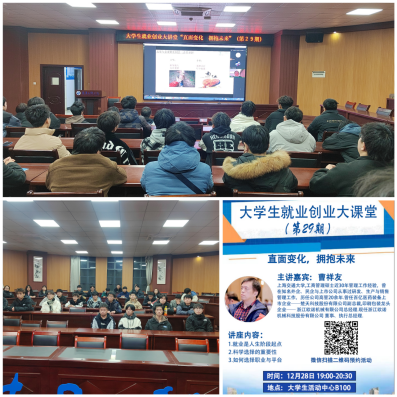 曹祥友以“直面变化,拥抱未来”为题,重点聚焦在校生如何快速定位选择适合自己职业与平台、树立正确的择业观,为同学们剖析了在校期间储备专业技能的重要性,使得处于迷茫期的学生浅析职业规划及方向,活动现场气氛活泼,同学们纷纷表示受益匪浅,对未来的就业方向有了更加明确的目标。(文/图 何钦)
