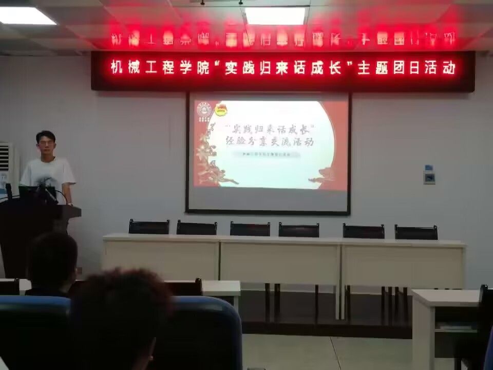 9月13日,999策略白菜手机论坛团委在机电楼A304开展“实践归来话成长”主题团日活动,各班级团支部书记、团委学生会各部门负责人共40余人参加。