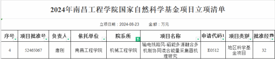 近日,国家自然科学基金委公布了2024年度国家自然科学基金项目评审结果,白菜官网唐刚教授“输电线路风-磁能多源融合多机制协同混合能量采集器机理研究”项目获准立项,资助经费总计32万元(直接经费)。(图/文 茶映鹏)