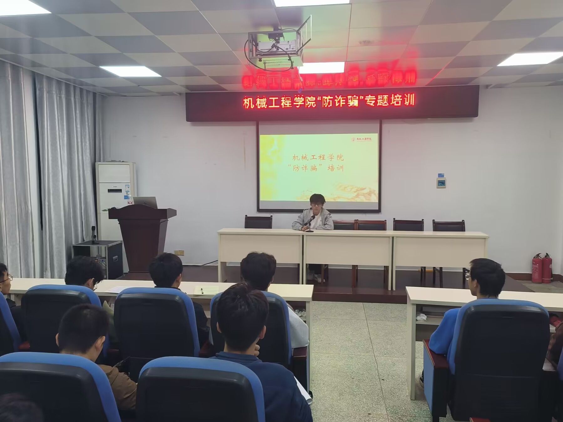 培训中,主讲人讲解了各种诈骗场景,从假冒公检法诈骗的恐吓诱导,到网络刷单返利诈骗的虚假诱惑,再到网络贷款诈骗的陷阱重重,并向学生讲解防诈反诈的要求及注意事项。