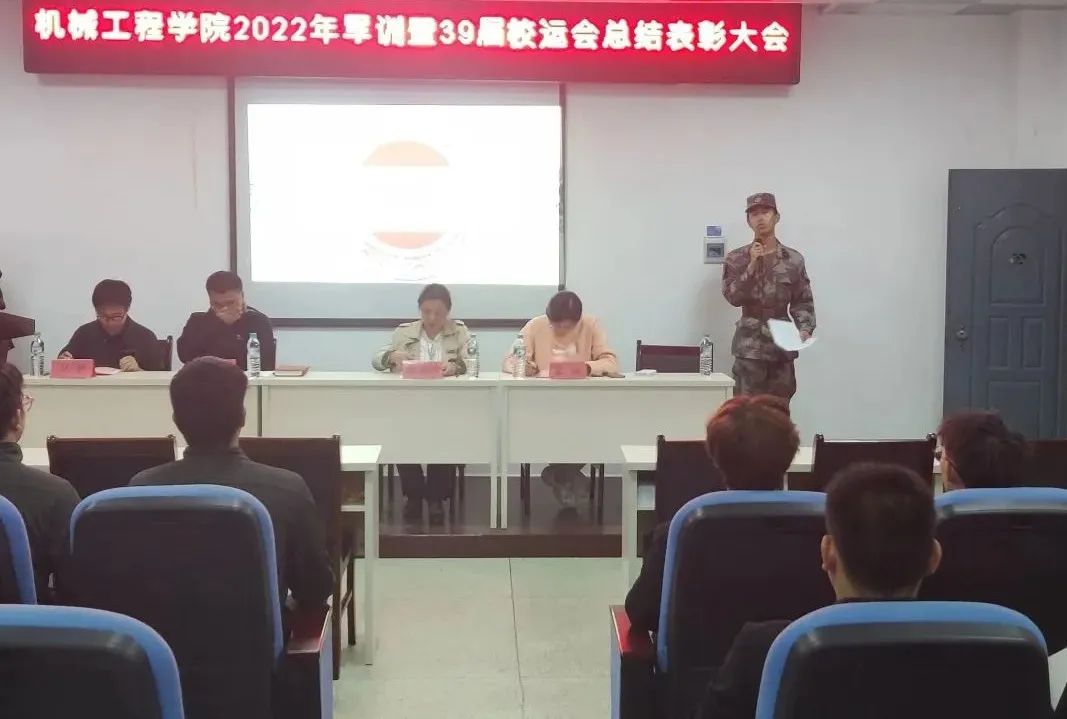 大会在嘹亮的国歌声中开始,然后为新生班助们颁发聘书、然后为班助们、军训教官们发放牛奶慰问品,其次为本次运动会上表现优秀的个人及集体颁发了奖状,最后张丽玲提出三点希望,希望田径队能够再接再厉,勇夺佳绩;希望班助能够在接下来继续协助新生,做好引导者;希望同学们能把在运动会上拼搏的精神继续保持下去,发挥出自己的特长,传承机械院“自强不息,制造报国”的院训,让自身变得越来越好,机械院越来越强。