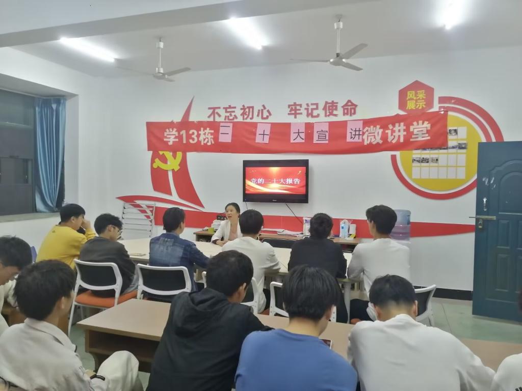 11月9日晚,白菜官网学习贯彻党的二十大精神辅导员宣讲团成员、999策略白菜手机论坛党委副书记张丽玲来到13栋新时代文明实践中心宣讲党的二十大精神,999策略白菜手机论坛党员代表、团学干部代表、各班级代表共50余人聆听宣讲。