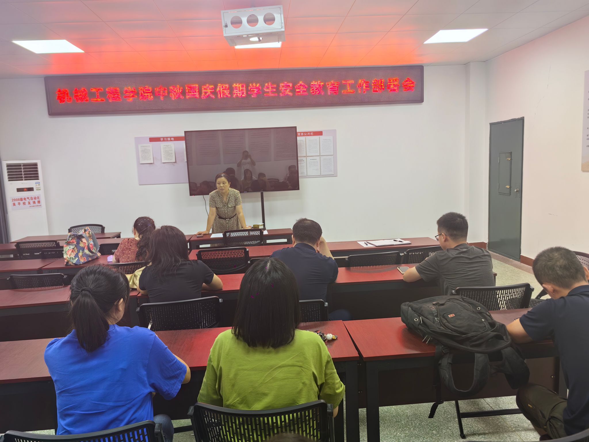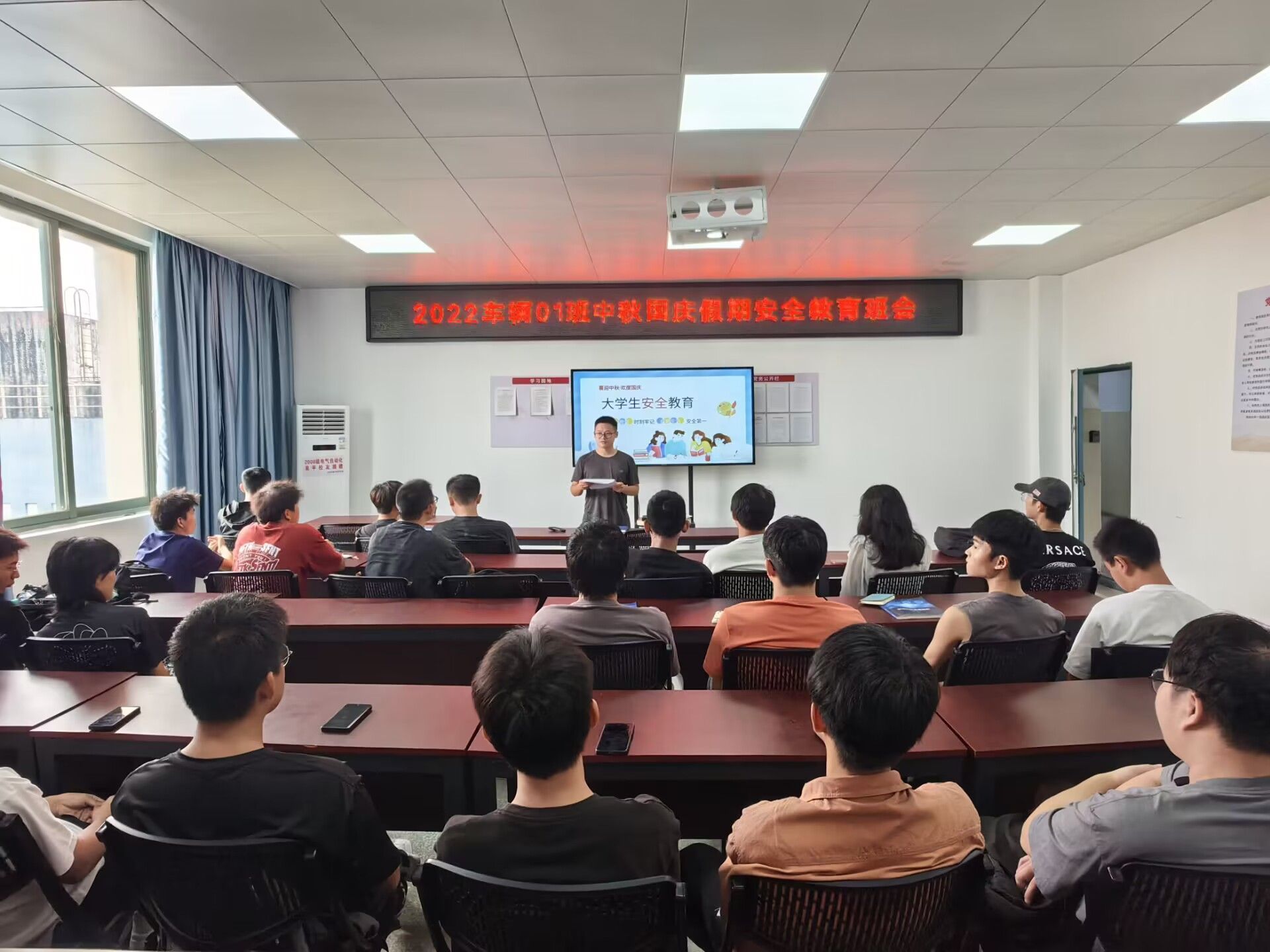 随后,学院各班级纷纷召开主题教育班会,不断提升学生中秋国庆假期的安全意识(文/图 耿子淯)
