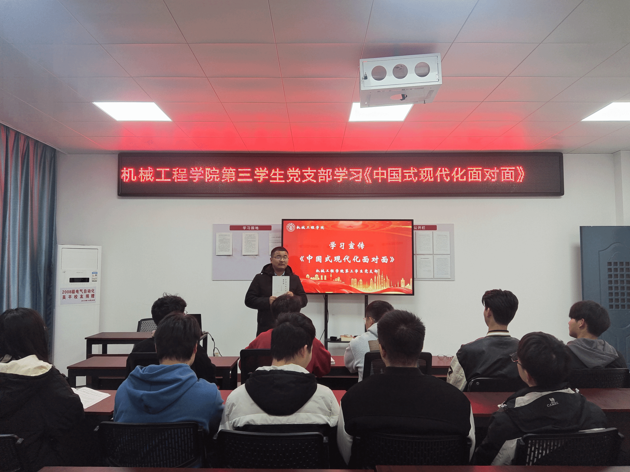 为深入学习贯彻党的二十大精神,帮助学生党员更好地理解中国式现代化的鲜明特色和丰富内涵,12月6日,999策略白菜手机论坛第三学生党支部在机电楼A406集中学习《中国式现代化面对面》,支部全体党员参加。