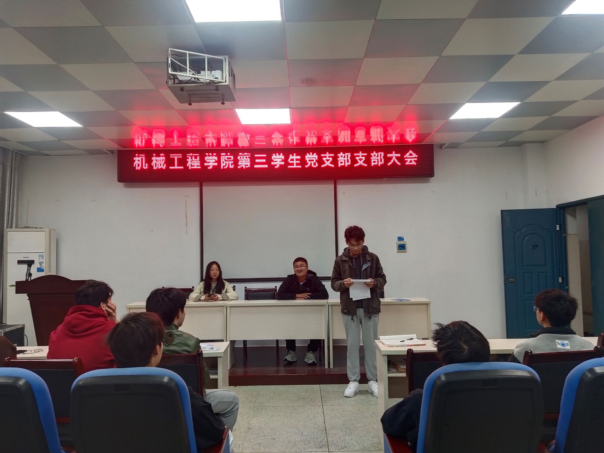 11月11日下午,999策略白菜手机论坛第三学生党支部在机电楼A304会议室召开支部党员大会,支部全体党员同志参加本次会议。