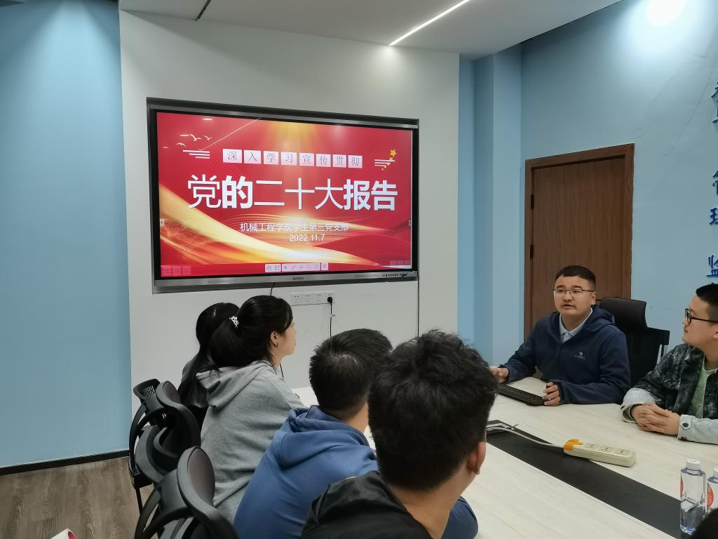 11月7日,999策略白菜手机论坛学生第三党支部组织召开了深入学习贯彻党的二十大精神宣讲会,会议由支部书记涂雪仁主持,支部全体党员参加会议。